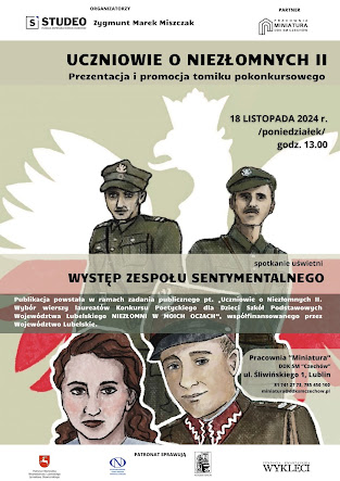 Publikacja powstała w ramach zadania publicznego pt. "Uczniowie o Niezłomnych. Wybrane wiersze laureatów I i II Konkursu Poetyckiego dla Dzieci Szkół Podstawowych Województwa Lubelskiego NIEZŁOMNI W MOICH OCZACH", współfinansowanego przez Województwo Lubelskie. W spotkanie zaangażowane były panie z KLUBU MŁODYCH DUCHEM oraz ZESPÓŁ SENTYMENTALNY.